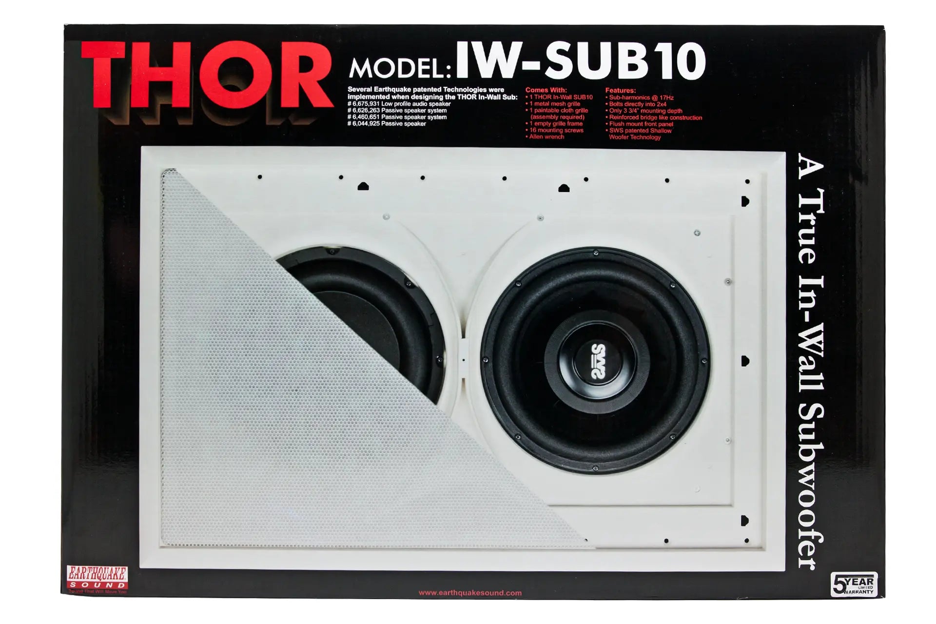 Earthquakes Thor In-wall subwoofer fills a long-awaited space in the Inwall market segment and distinguishes itself by being the only inwall subwoofer with 20 Hz response.