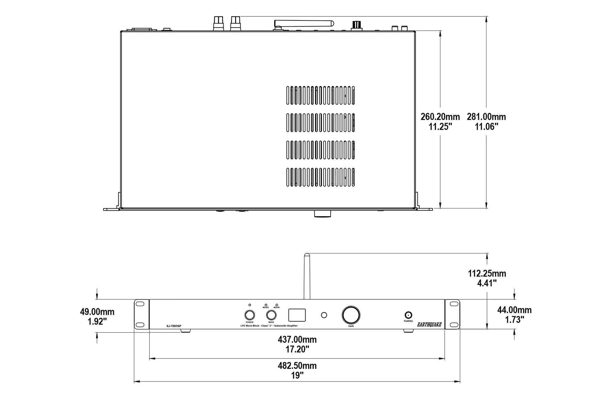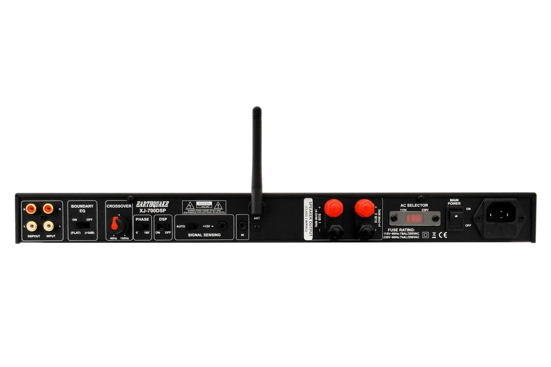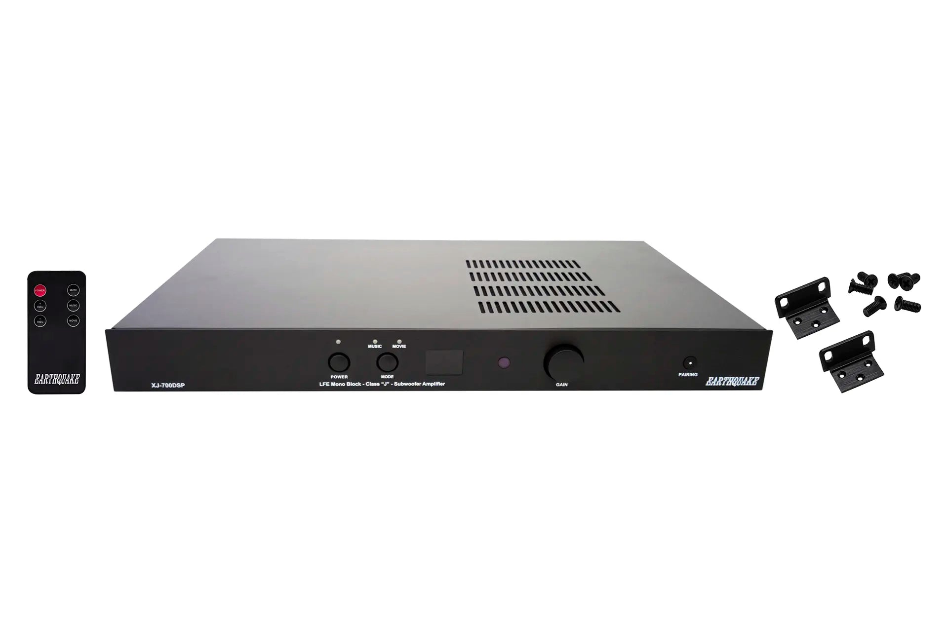 The XJ-700-DSP has a unique built-in Boundary EQ designed to remove exaggerated boomy sounds created by corner loading, large wall surfaces, or installations inside custom cabinetry; other amplifiers try to equalize the room only by adjusting the volume. This amplifier addresses the actual phase correction problem along with the room EQ. The XJ-700-DSP can also power multiple tactile transducers like Earthquake’s Q10B, as well as high response subwoofers like the patented THOR in-wall shallow subwoofer making it an extremely versatile option. Additionally, users may also connect any other passive subwoofer/s to this amplifier.